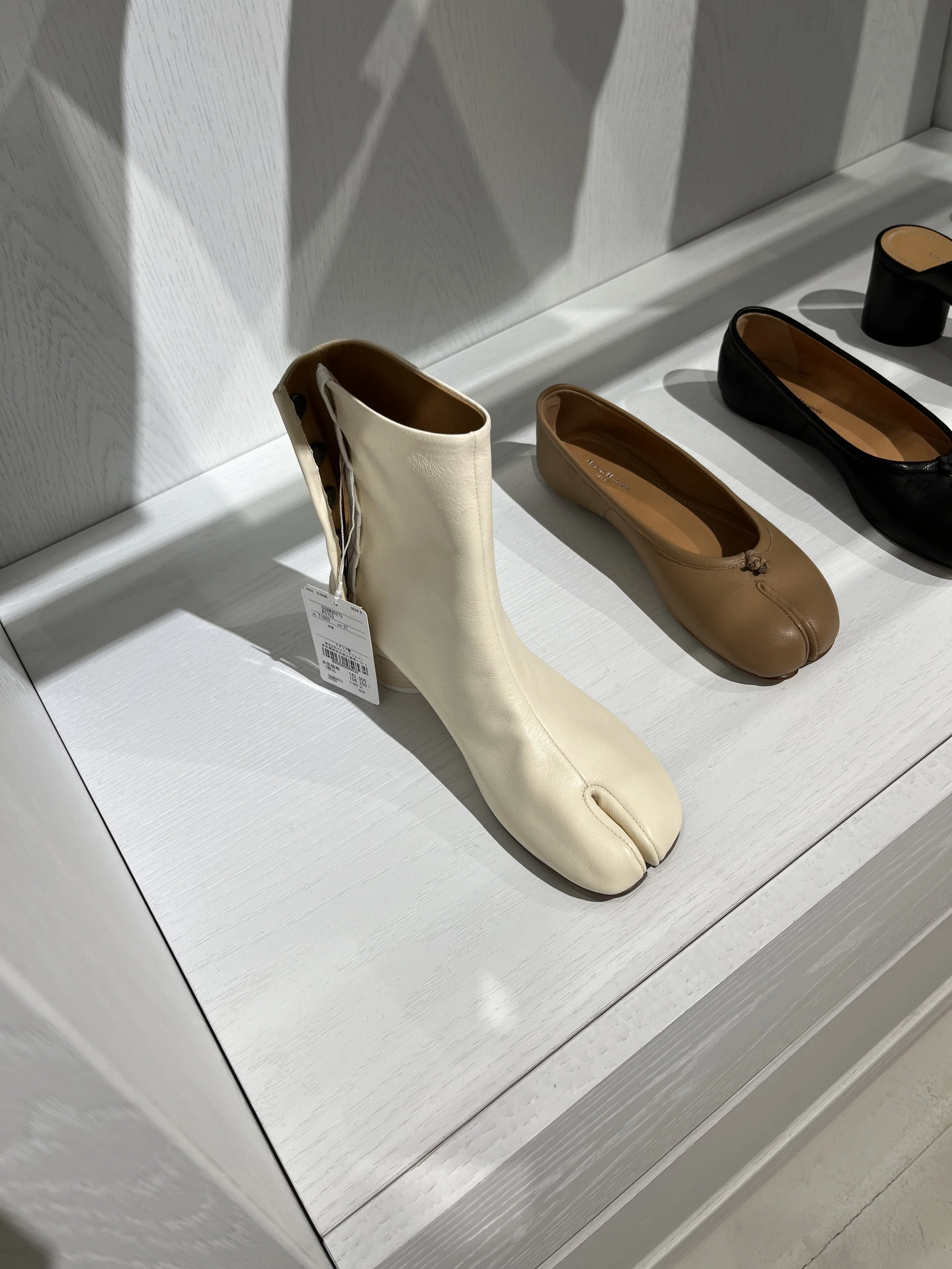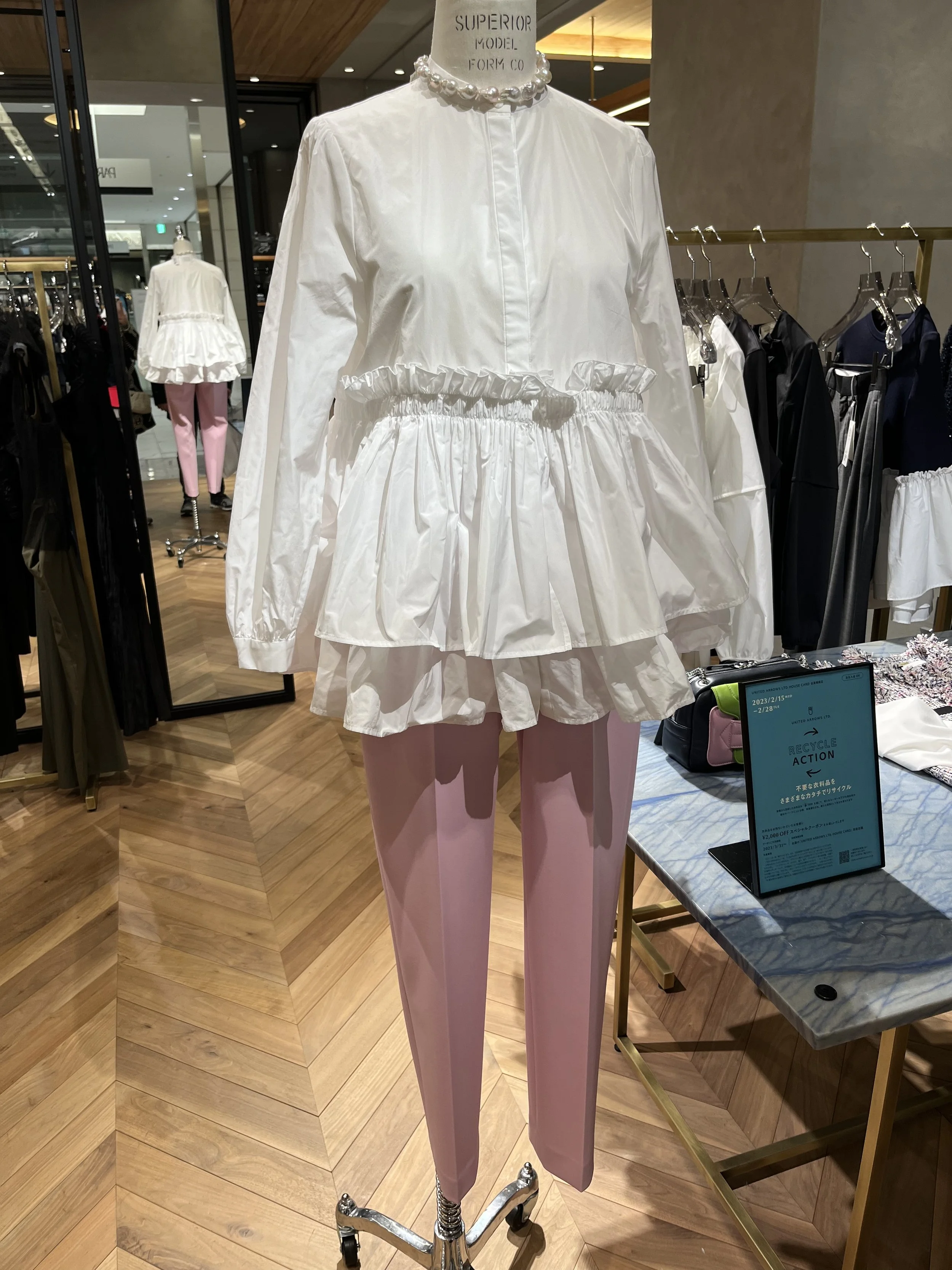 There were lots of trousers and boot cut pants with looser silhouettes. I saw women wear lose clothing like this all around Japan. Most of the heels are 2-3 inches tall and very sensible for running around town. Elegant and lovely are words that come to mind when I saw these outfits.